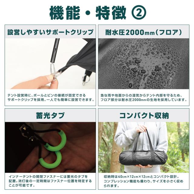 ソロキャンプをはじめ、グループキャンプ等でプライベート空間を確保したい方におすすめです