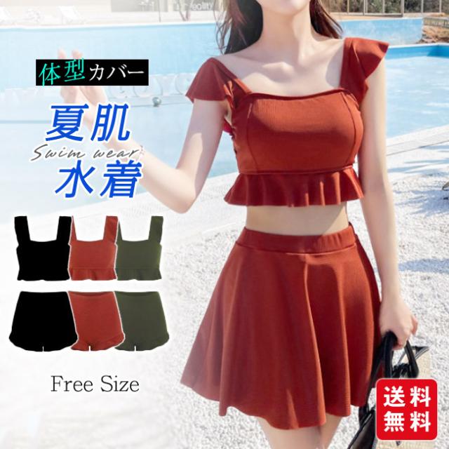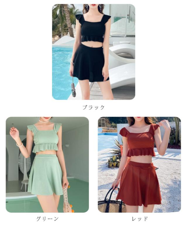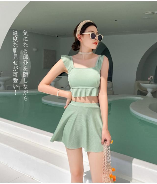 水着 レディース 体型カバー ママ 20代 30代 40代 50代 上下セット可愛い ビスチェ風