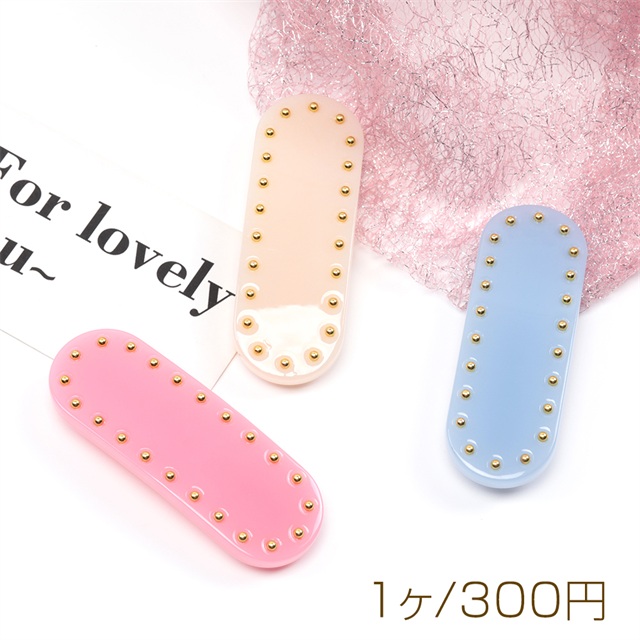 ヘアクリップ 鉄製/アセテート ゴールドビーズ付き 髪飾り 髪留め 約2.5×7.5cm(1ヶ)