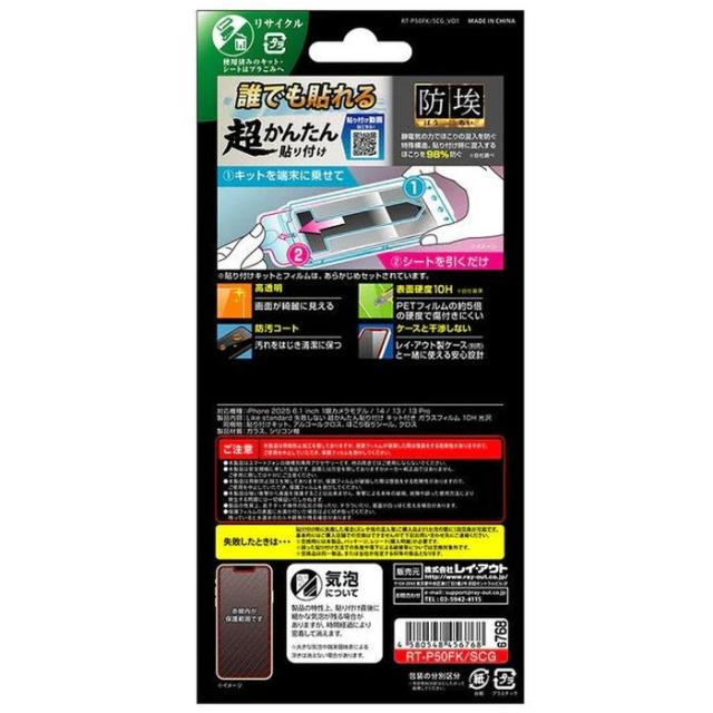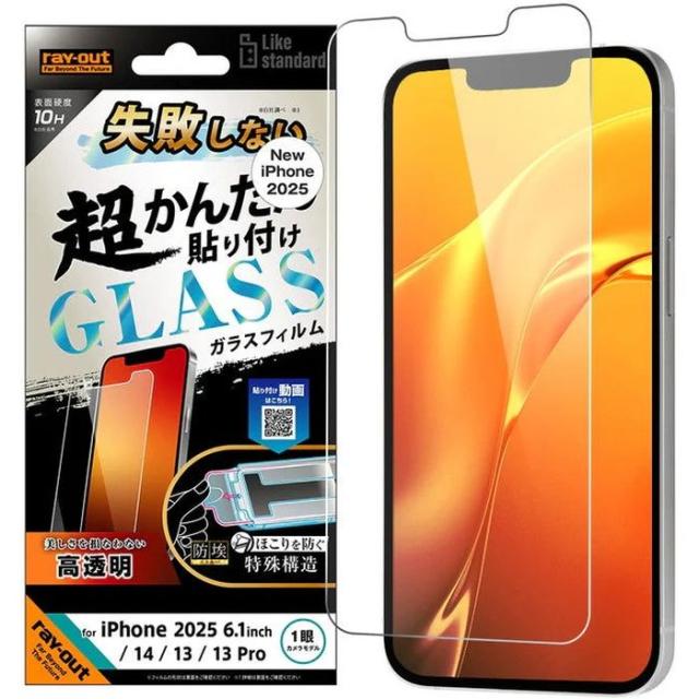 iPhone 16e/14/13/13 Pro LS 超簡単貼付K付 ガラスフィルム 10H 光沢 レイ・アウト RT-P50FK/SCG