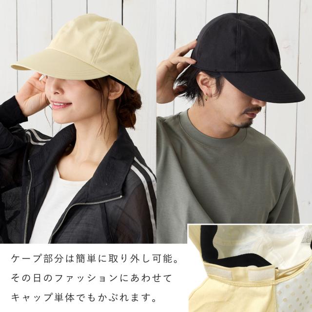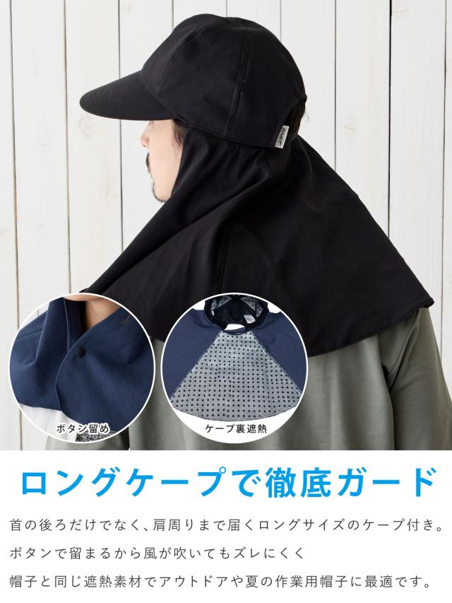 幅広つばと肩周りまで届くロングケープで日差し・暑さ対策!