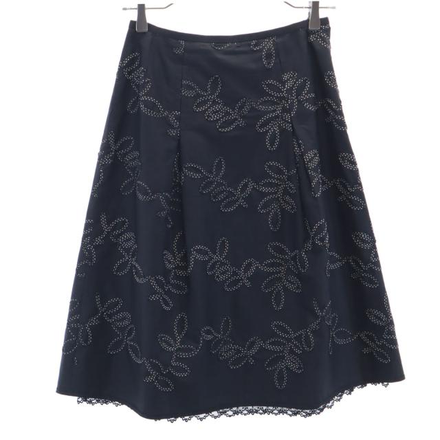 レリアン 日本製 リーフ柄 ミディスカート 7 ブラック Leilian レディース