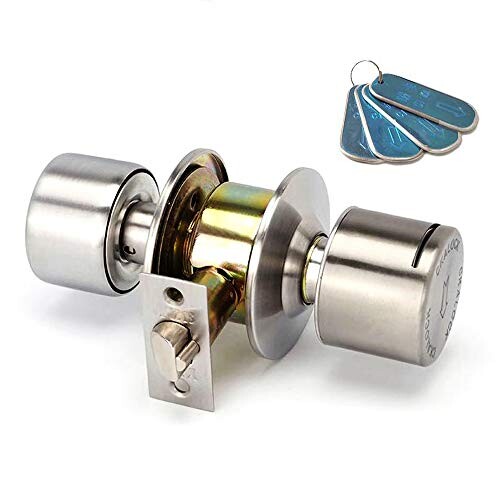 ステンレス製、30-50mmのドア厚に適したホテルの部屋専用ドアノブ 円筒錠 レバー 鍵付き(シルバー)