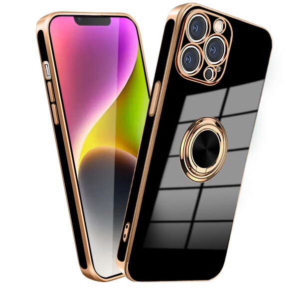 MiaoKeDa ケース 用のiPhone 13 Pro リング 耐衝撃 いphone13Pro リング付き スマホケース TPU 車載ホルダー ストラップホール付き メッキ加工 カバー ブラック