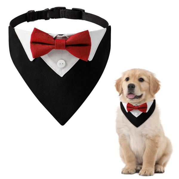 HACRAHO フォーマルドッグタキシードバンダナ, 1個 レッド 犬のタキシードコットンバンダナ 犬と猫のための蝶ネクタイとネクタイと犬の結婚式の襟, S