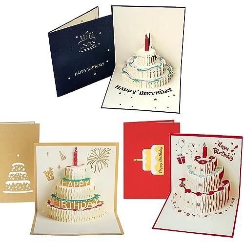 バースデーカード 3枚セット 3D立体 誕生日 メッセージ ポップアップ グリーティング バースデ カード お誕生日 祝い 感謝 封筒付き (タイプB)