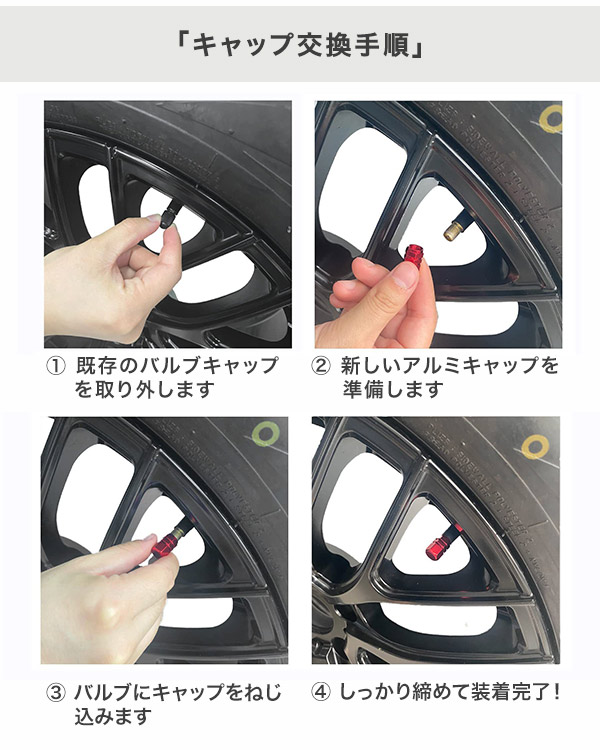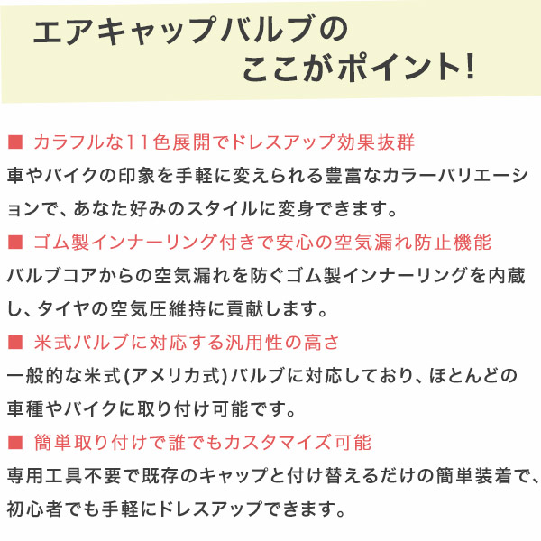 米式バルブ対応の4個セットエアキャップバルブが登場!