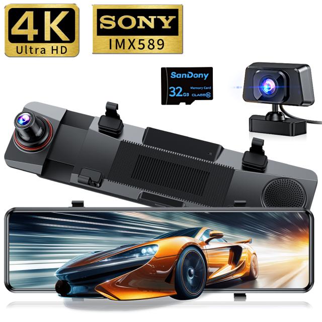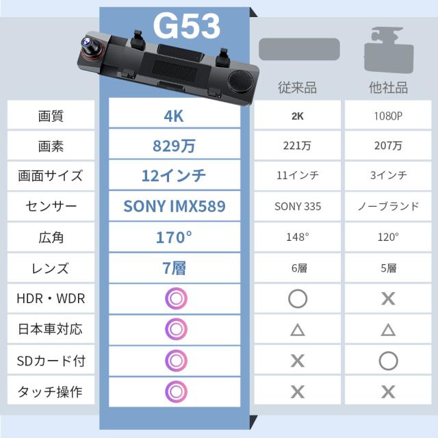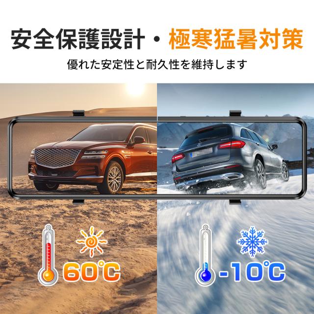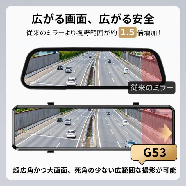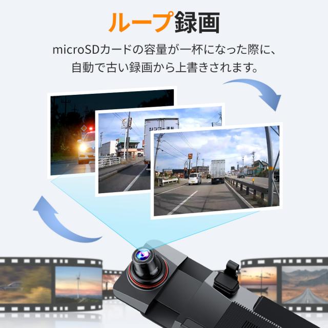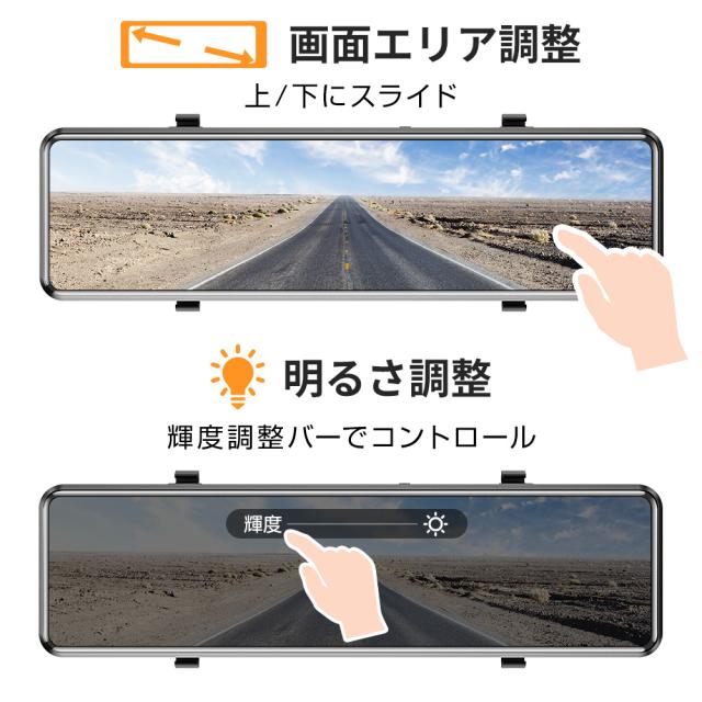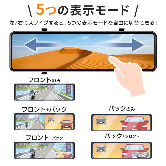 ドライブレコーダー 前後2カメラ ミラー型 日本製センサー 12インチ フルタッチパネル SONYセンサー 4K高解像度 170度広角視野 プレゼント