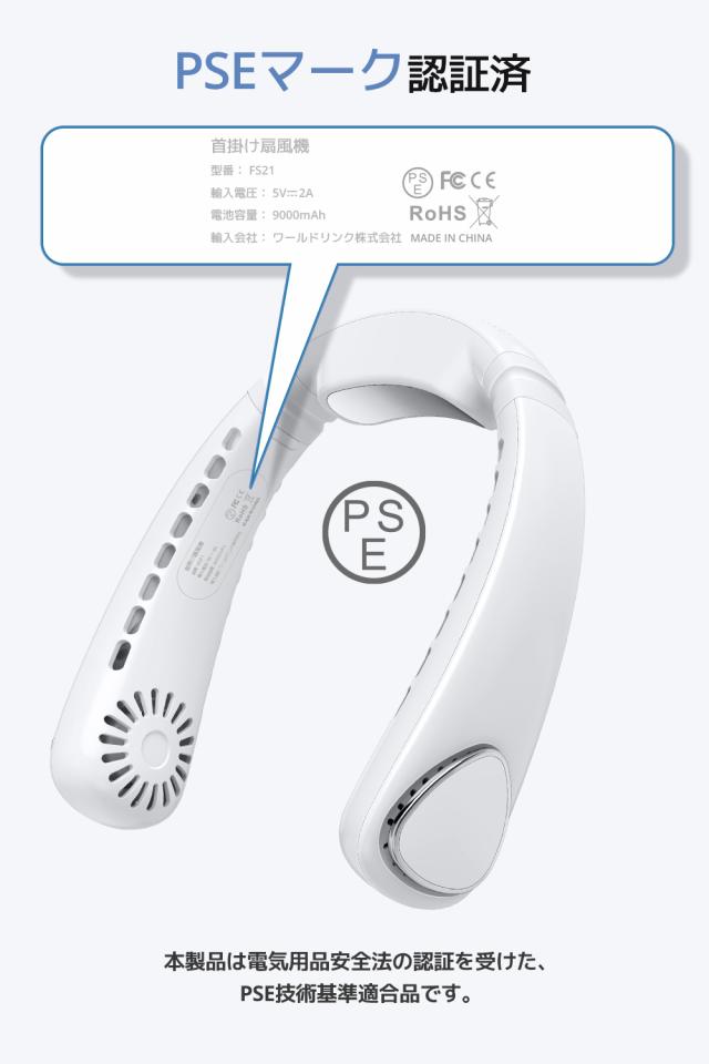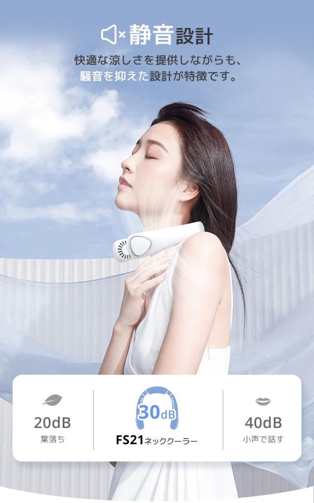 首かけ扇風機・3段階風量調節・静音設計・携帯扇風機