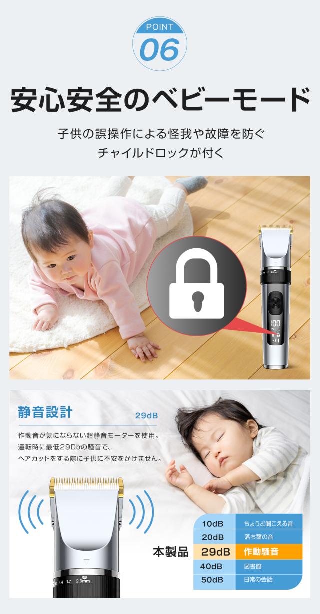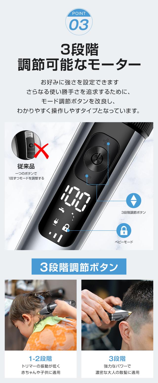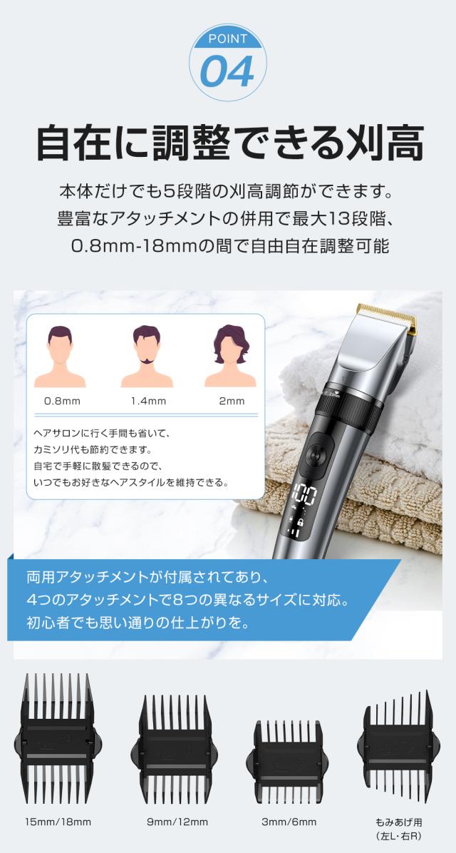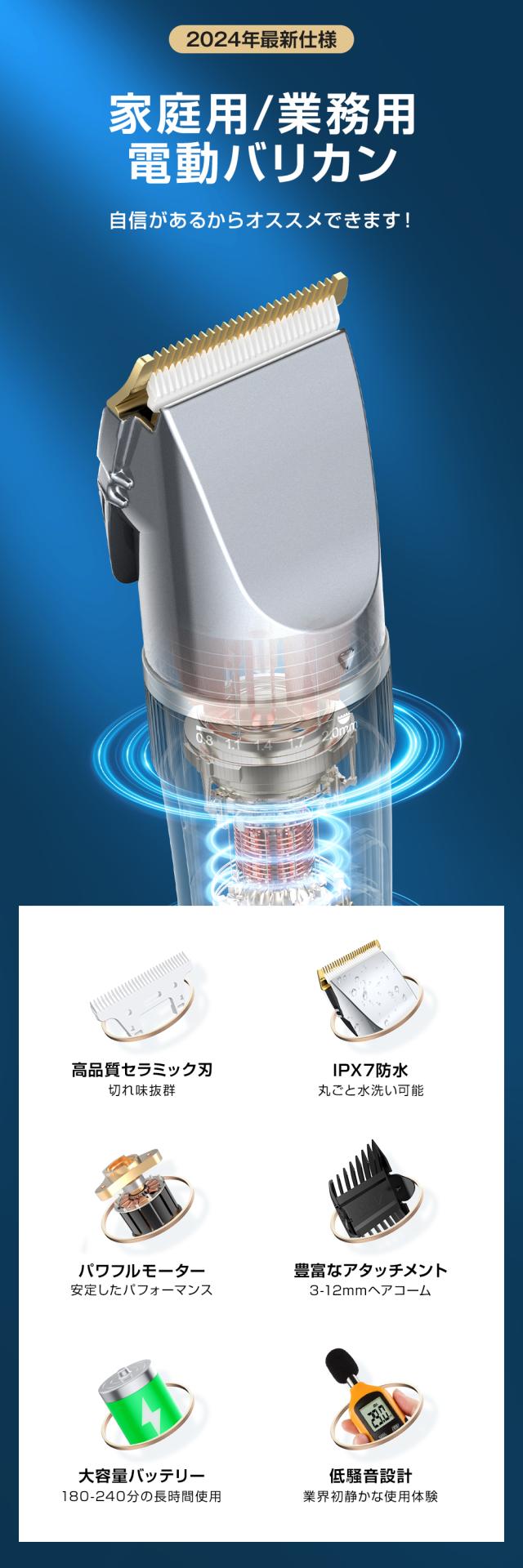 バリカン 散髪 電動バリカン IPX7防水 低騒音 全身水洗可 電気バリカン ヘアカッター 大容量 USB充電式 アタッチメント付き LEDディスプレイ メンズ 子供/家庭用