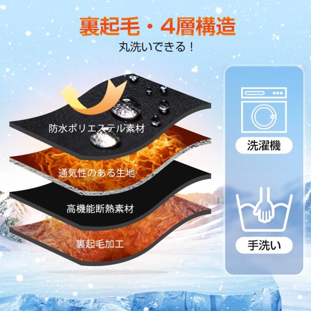 表面の撥水加工生地と裏地に使用したフリースで寒さも強風も雪も雨もすべて遮断!
