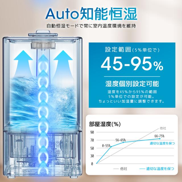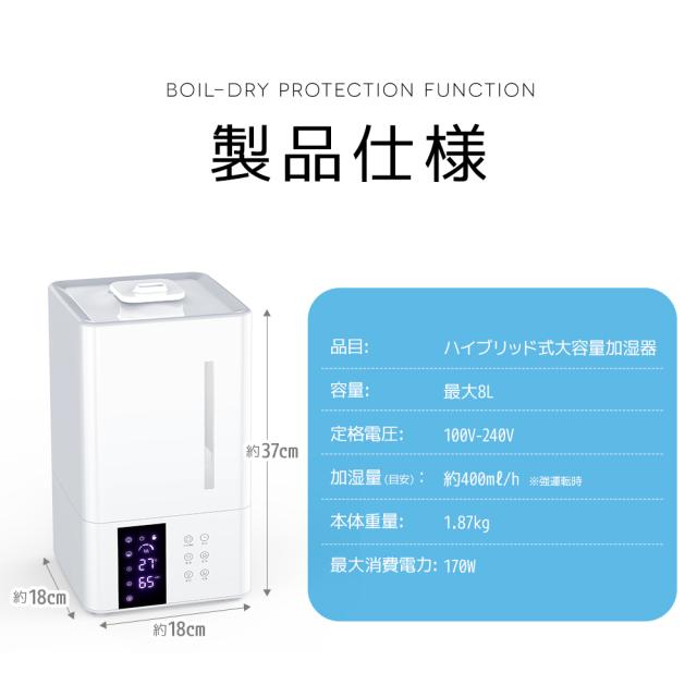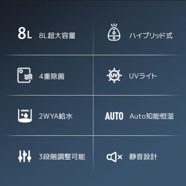 加湿器 スチーム式 8L 大容量 卓上 超音波式 高級超音波 花粉対策 ハイブリッド式 UVライト付き 除菌 自動湿度調節 空焚き防止 上部給水 静音