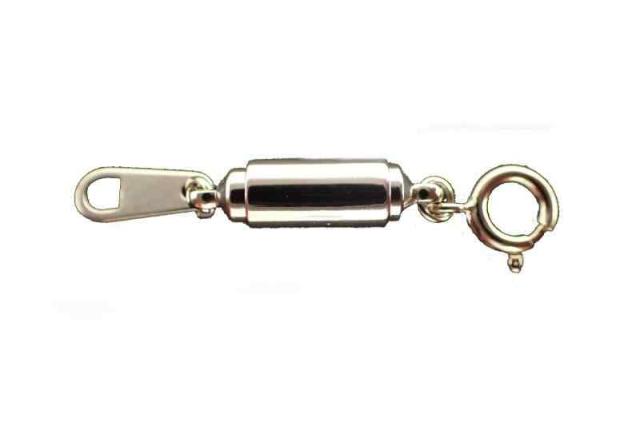 パーツアンドパーツ マグネットクラスプ 脱着式 真鍮製 ヒキワ・プレート付 筒型 簡単装着 シルバーカラー ゴールドカラー (シルバーカラー)