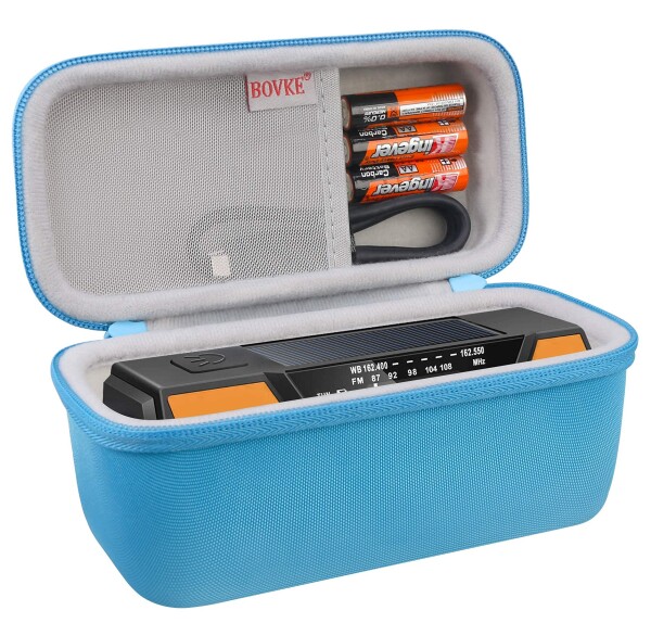 BOVKE FosPower緊急ソーラーハンドクランクポータブル天気ラジオ用キャリングケース、FosPower緊急電源バンク用ハードトラベルケース、アクセサリー用の追加メッシュポケット付き、ブルー