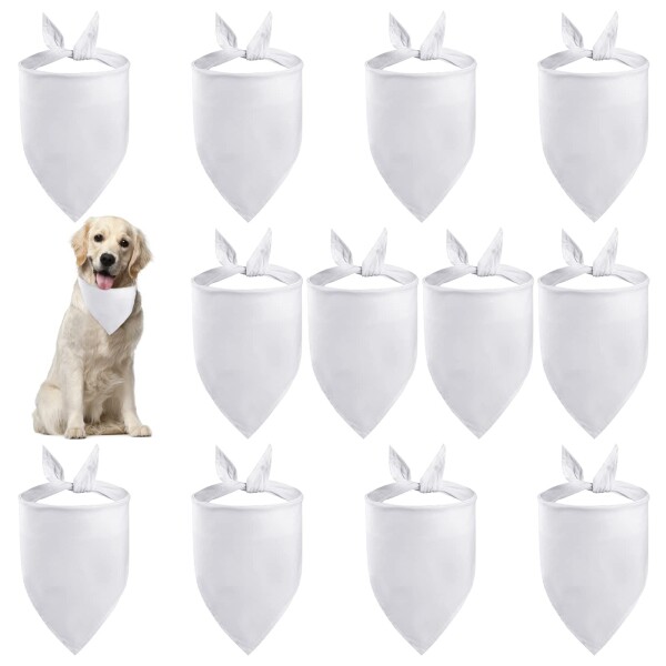 HACRAHO 空白の犬のバンダナ, 12個 ソリッドドッグビブポリエステルドッグスクエアスカーフブランクDIY猫バンダナ中小および大型犬と猫用, ホワイト