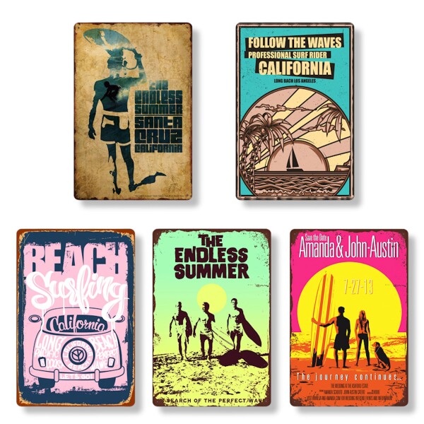ブリキ 看板 サーフ ビーチ 壁飾り アメリカン プレート インテリア レトロ 雑貨 アンティーク ヴィンテージ風 (SURF5)