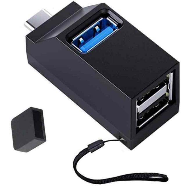 Type C ハブ 3.0 ダイレクトプラグ 3ポート USB3.0+USB2.0ポート 1拡張 組み合わせハブ 超小型 バスパワーUSBポート 高速データ転送対応システム MacOS×10.6/OS×10.7-10.8/Windows10/8.1/7 (SP1)/Vista(SP2)/XP(SP3) Type C 変換アダプタ USBポート ポータブル機能 コンパクト (1パック)