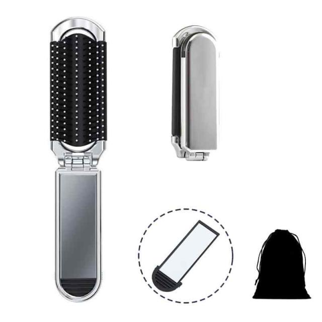 MAGPIE 折りたたみブラシ 軽量 静電防止 ミラー付き レディース ブラシ ハンディブラシ シルバー (Silver)
