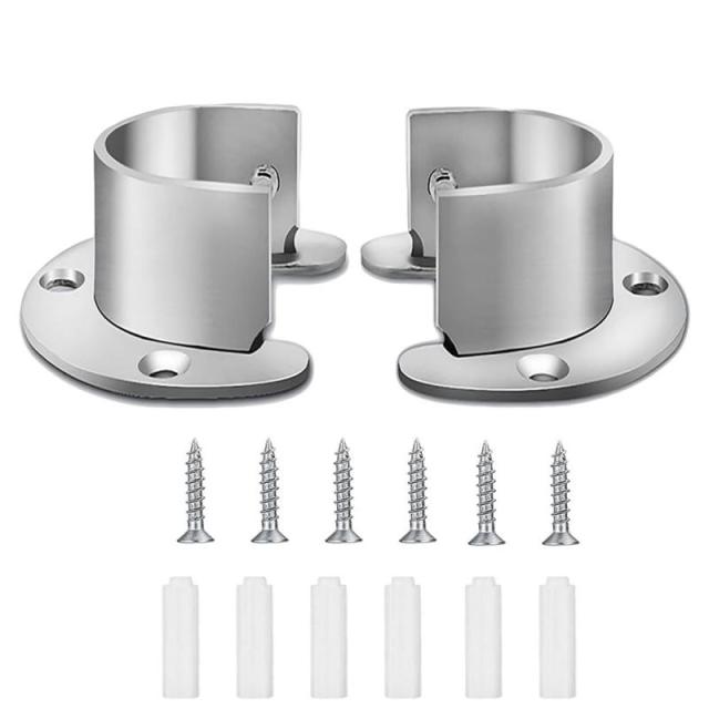 ステンレス鋼 U字型 金具 クローゼットポールソケット ネジ付 クローゼットロッドサポート フランジロッドホルダー クローゼットロッドホルダー シャワーロッド ハンガーポール 2個セット (32mm)