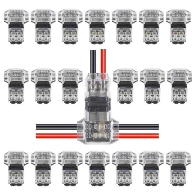 20個入り T字型 2ピン 配線コネクター 車用コネクター 分岐配線用コネクター 36V 9A 0.3sq-0.75sq AWG18-22 適合線径φ1.5mm-φ2.1mm