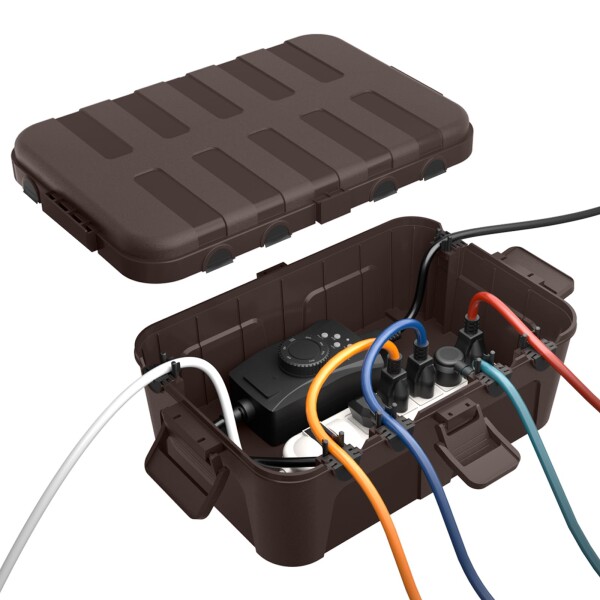 RESTMO 大型コンセントボックス 屋外 電源 防水 ボックス IP54 雨よけ 耐候性 ガーデンライト、タイマー、電源タップ、コンセントプラグに最適 ブラウン