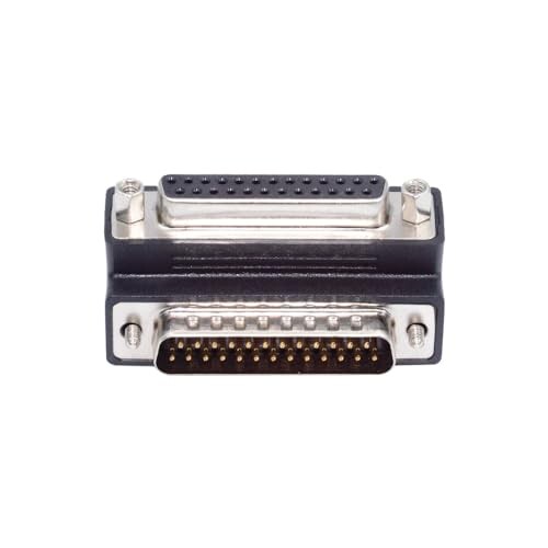 ナット付き 25 ピンオスとネジ付きメス。25 ピン密度プラグからソケットアダプタ。2 列コンタクト 90 度角度付きアダプタ。
