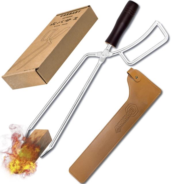 CARBABY 薪ばさみ ファイヤープレーストング 炭ばさみ BBQカーボントング バーベキュー用 暖炉器具 キャンプ道具 収納カバー付き(ステン