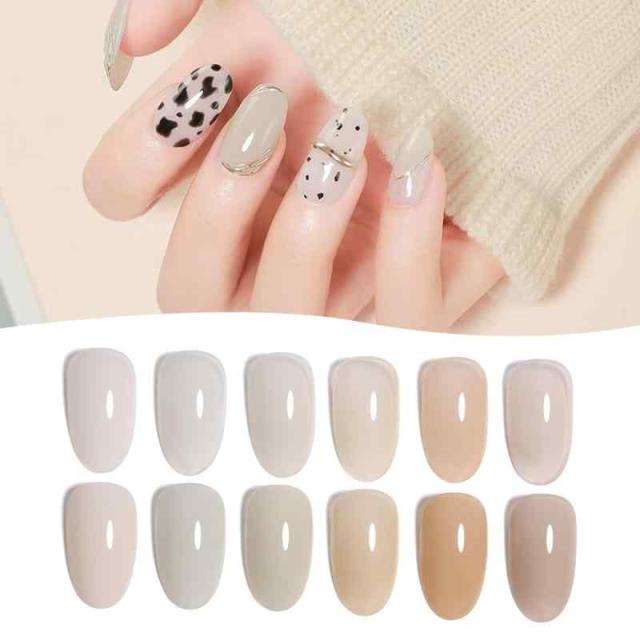 【肌に馴染むスキンカラー】絶妙な透け感のシアーカラーだからお肌に馴染む柔らかさ6色セットので、お好きな色を組み合わせて思いのままなネイルアートを仕上げります。