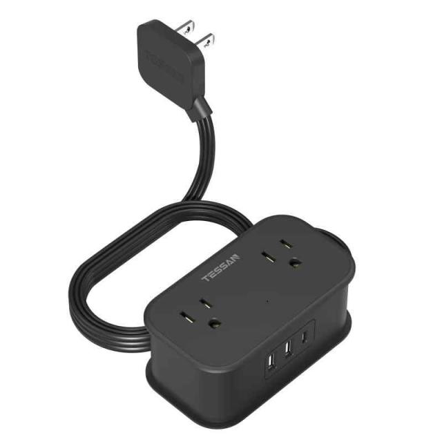 USB コンセント タップ 分岐 電源タップ USB-C付き TESSAN たこあし コンセント 3口 タコ足配線 USB充電器 マルチタップ 雷ガード付 小型軽量 日本国内でのみ使用可能 (1m, ブラック+方型)
