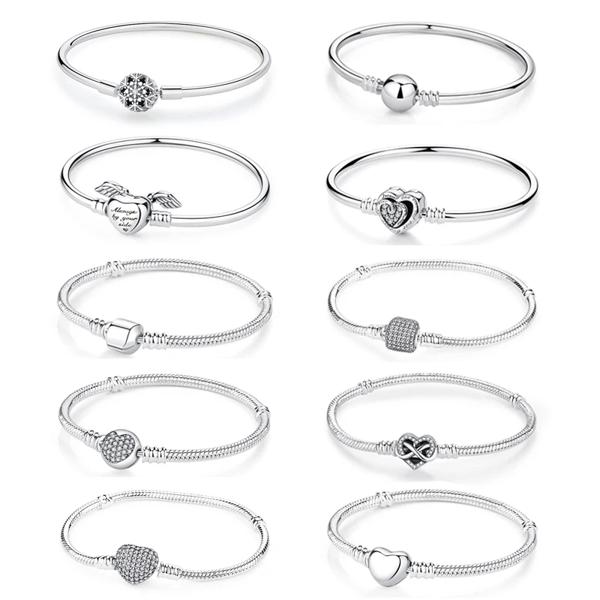 オリジナル 925 スターリングシルバーブレスレットバングルラブハートクリップチャームビーズスネークチェーン女性のためのローズゴールド DIY 高級ジュエリー