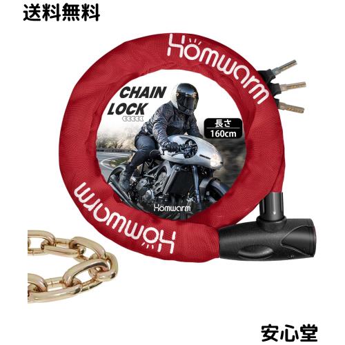 (レッド, 160cm) バイクロック チェーンロック 頑丈 盗難防止 鍵3本付き 極太 長さ1600mm チェーンパイプ直径8mm 多用途 自転車 バイク