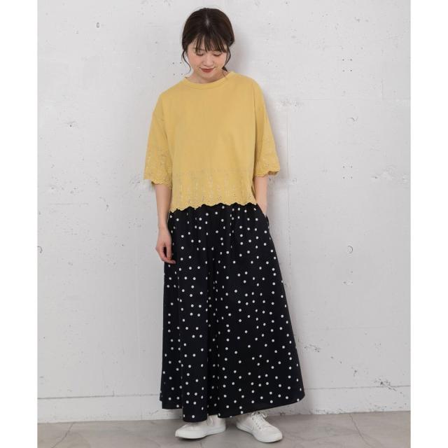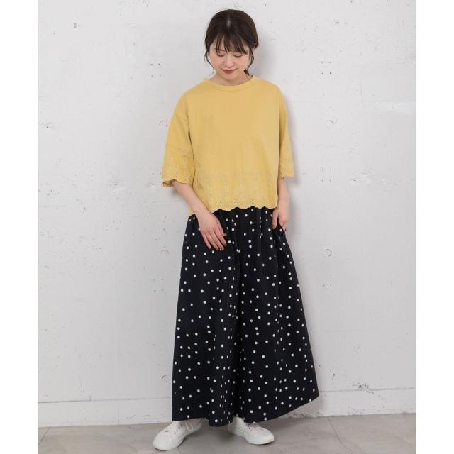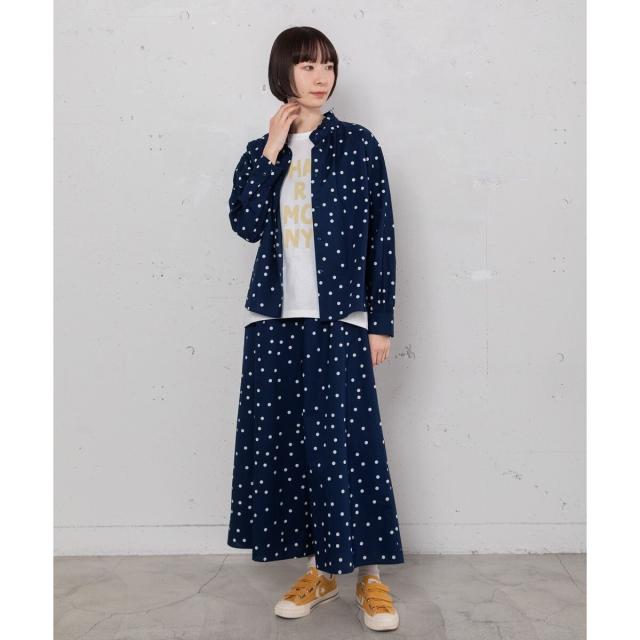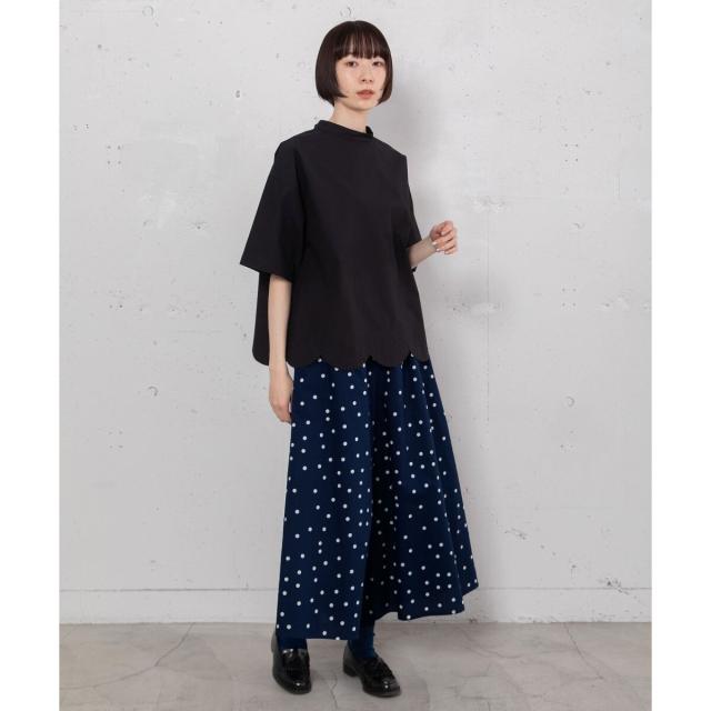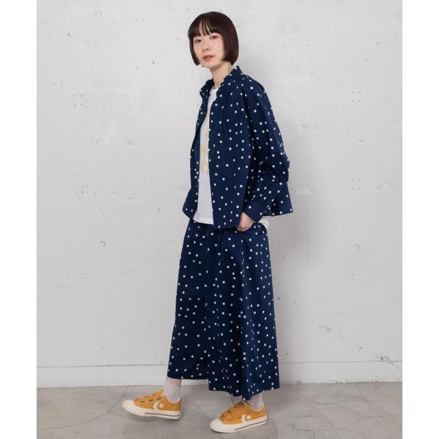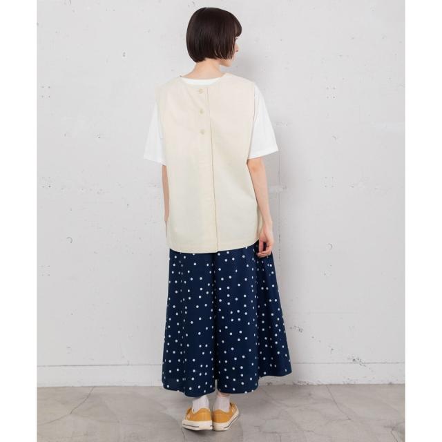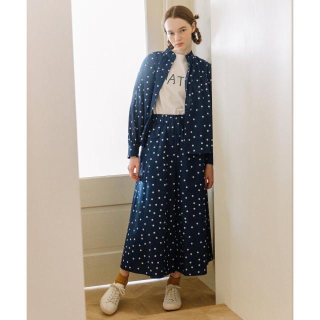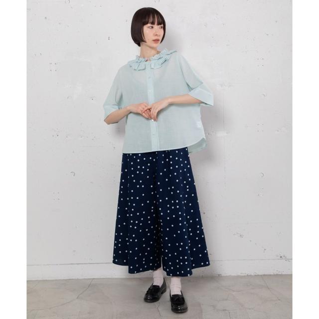 カジュアルにTシャツ合わせでも、きれいめにブラウスを合わせるのもおすすめ。同素材の2511146953 スタンドフリルカラーブラウスや 2511146954 ランダムドットプリントバックタックシャツとのセットアップでも着用頂けます。