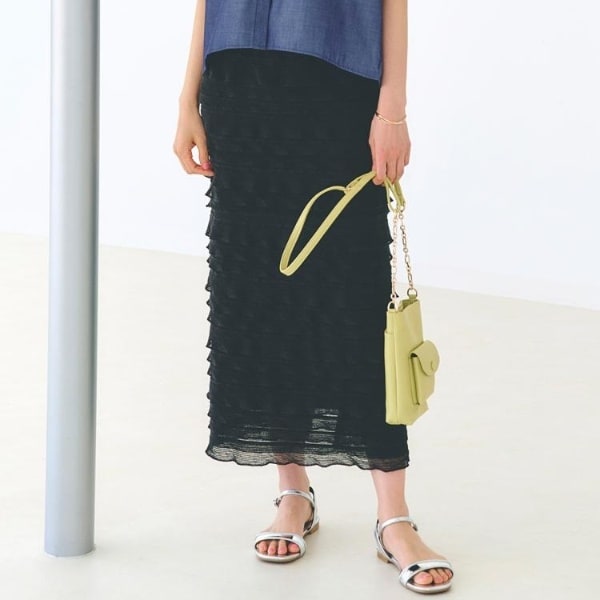 大人のフェミニンスタイル フリルナロースカート