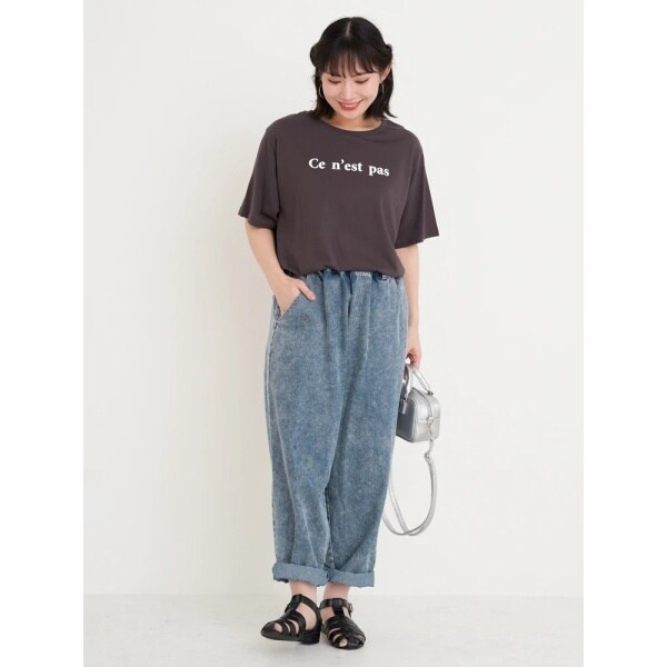 合わせやすいロゴTeeは1枚で着てもコーディネートのさりげないアクセントになるので、ワードローブに常備しておきたいアイテム。ベストやジレを羽織ってロゴをチラッと見せてコーディネートのアクセントにしても◎。