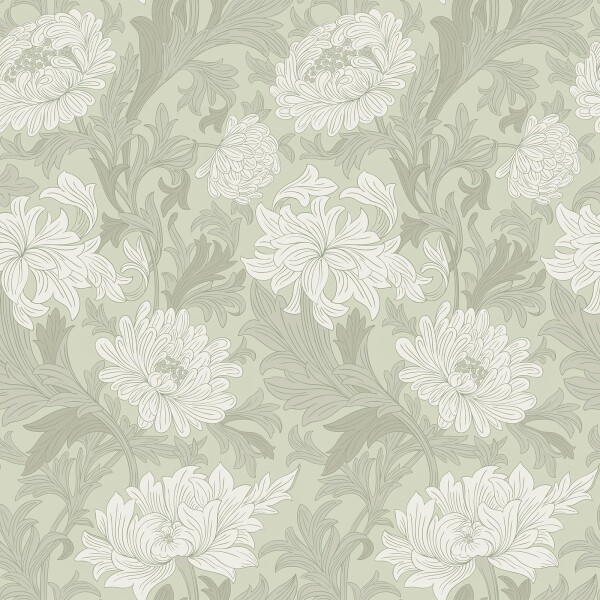 ??【可愛い柄物】:この花柄の壁紙のパターンデザインは絶妙でレイヤードされており、主にライトグリーンと白をメインカラーとして使用しており、新鮮でエレガントな雰囲気を作り出しています。文様にはさまざまな菊が散りばめられており、それぞれが独特の姿勢と美しさを見せています