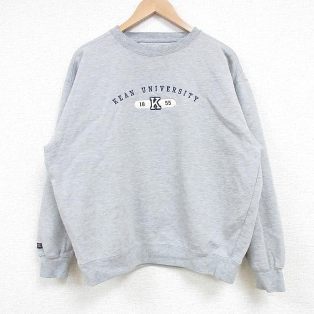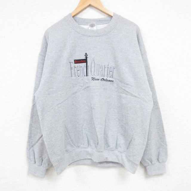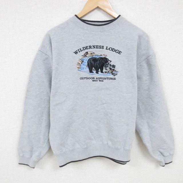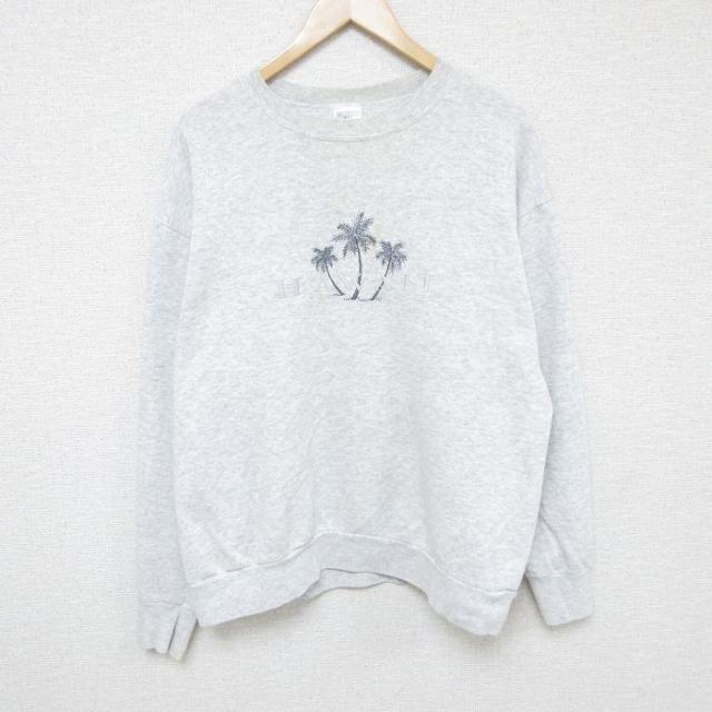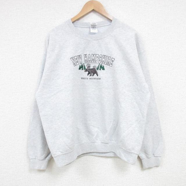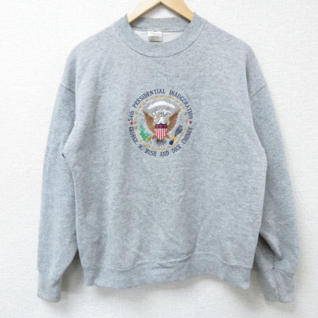 【商品名】 L★古着 フルーツオブザルーム 長袖 スウェット メンズ 00年代 00s 白頭鷲 刺繍 クルーネック グレー 霜降り
