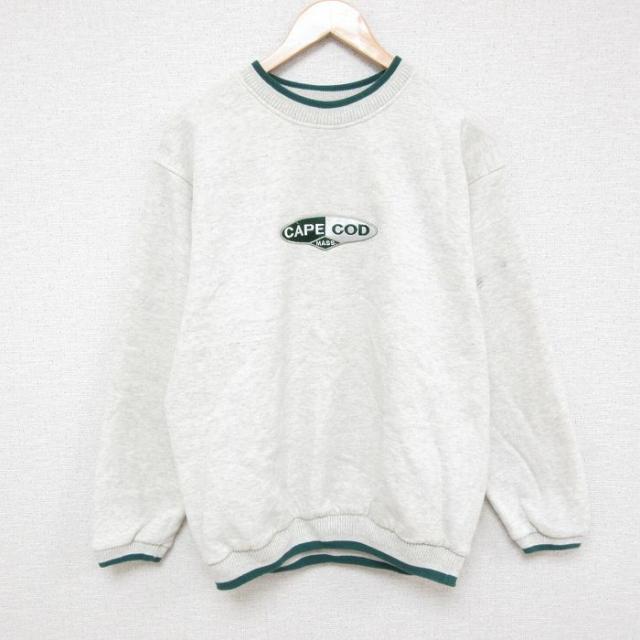 古着 フルーツオブザルーム 長袖 スウェット メンズ 00年代 00s 白頭鷲 ホワイト 刺繍 クルーネック グレー 霜降り Lサイズ 中 中古 古着