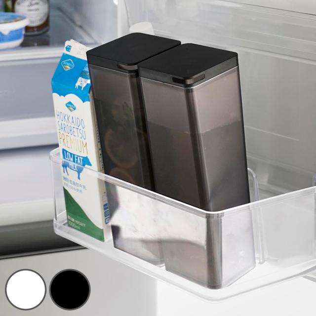 冷蔵庫のポケットに収納しやすいスリムで四角い形状です。冷蔵庫のドア開閉時も、水はね防止フィルターを蓋に取り付けることで水はねを防止します。