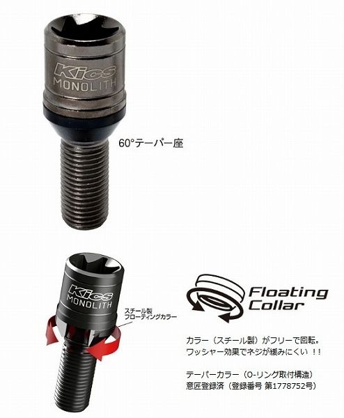 協永産業/KYO-EI Kics モノリス ボルト グロリアスブラック M14×P1.5 入数:1セット(20個) MNB3035K キョーエイ KYOEI MONOLITH BOLT Racing Gear レーシングギア キックス Floating Collar フローティングカラー ワッシャー効果 Glorious Black 黒 35mm 35ミリ automobile motorcar オートモービル モーターカー カー 車 自動車 車両 4965581281346 507934060