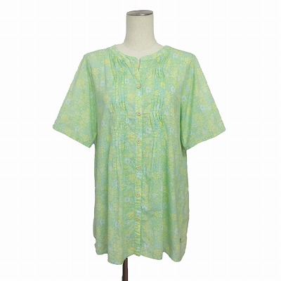 【中古】ハッシュパピー Hush Puppies シャツ ブラウス 花柄 ワンポイント L 緑
