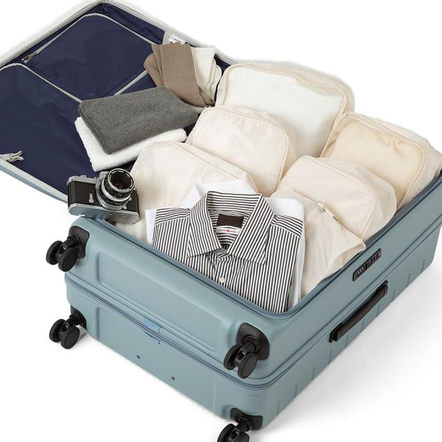1気室に荷物をパッキングできるので、空港やホテルの狭いスペースでも簡単に荷物の出し入れが可能。