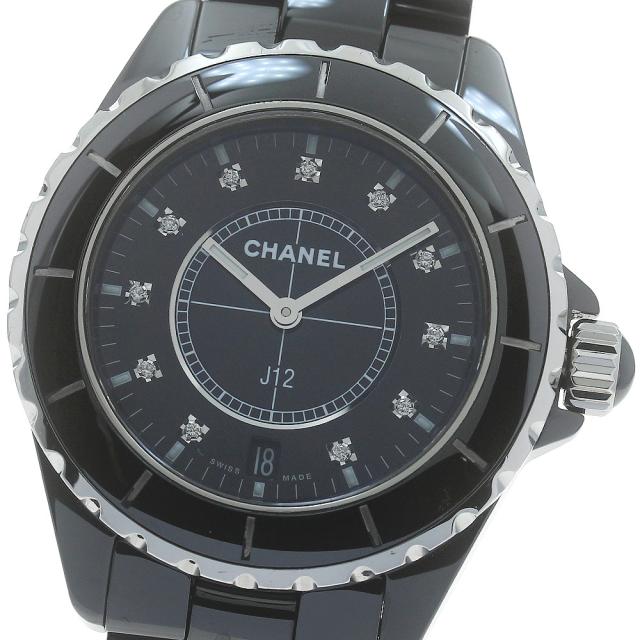 シャネル CHANEL H2124 J12 デイト 黒セラミック 11Pダイヤ クォーツ メンズ 良品 _874258