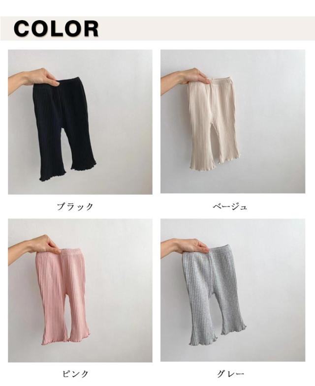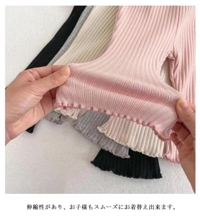 ベビー レギンス フレアレギンス スパッツ リブレギンス フリルパンツ 赤ちゃん キッズ 女の子 春 夏 秋 冬 ズボン パンツ 長ズボン 蚊除け 虫除け 日除け 履きやすい ストレッチ 保育園 幼稚園 お着替え かわいい おしゃれ メロウフリル リブ素材 シンプル 73-110