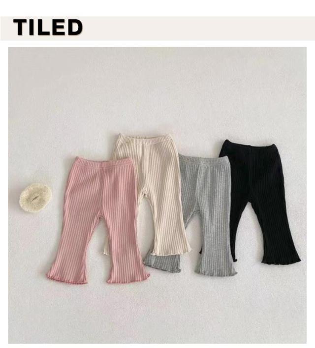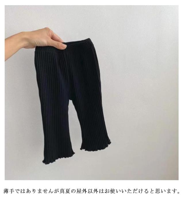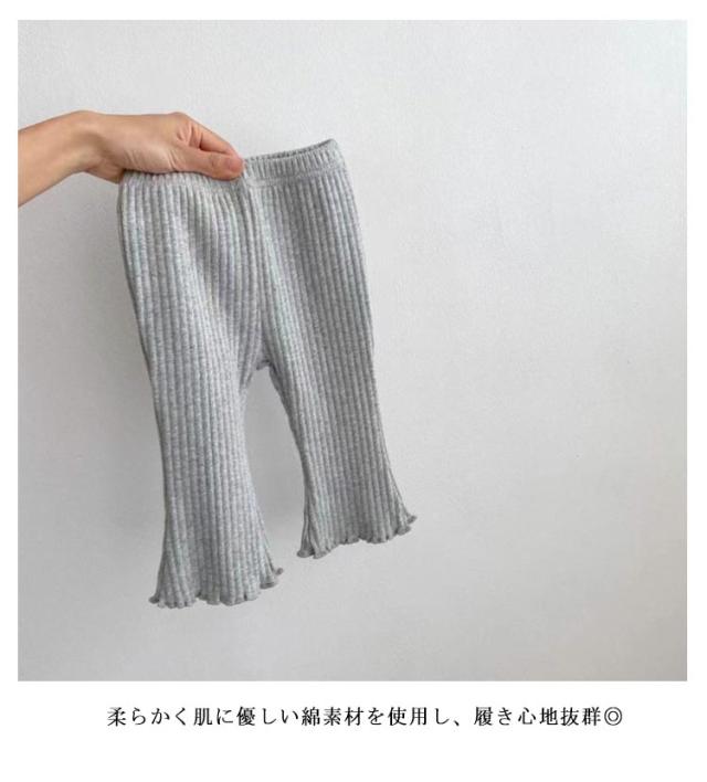 | メロウフリルがおしゃれなレギンスパンツ♪ 柔らかく肌に優しい綿素材を使用し、履き心地抜群◎ 伸縮性があり、お子様もスムーズにお着替え出来ます。 生地はしっかりした肌触りの良いリブ素材で長くお使いいただけます。 薄手ではありませんが真夏の屋外以外はお使いいただけると思います。 ウエストのゴムがしっかりめ、でもきつくなさそう。動き回る元気なお子さんに最適なフレアレギンスパンツです。 トレンドのフレアパンツはお出掛けやデイリーユースにぴったりアイテム! | |
