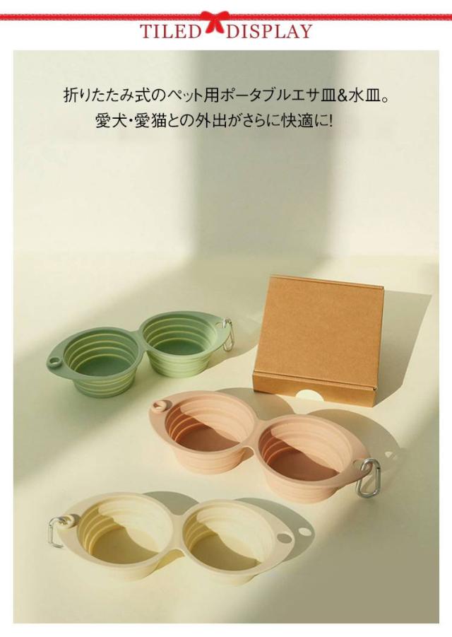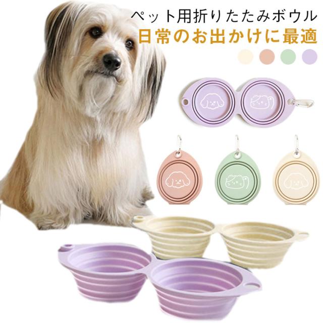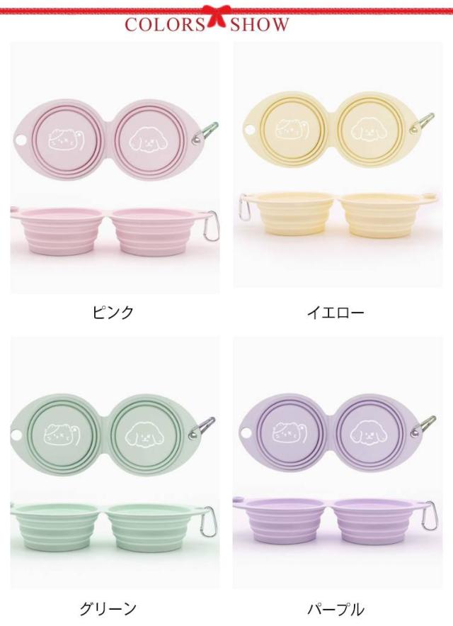 ペット フードボウル ウォーターボウル 折りたたみ 犬 猫 ポータブル エサ皿 水皿 水入れ 食器 ペット食器 小型犬 中型犬 シリコン製 ダブルボウル 送料無料
