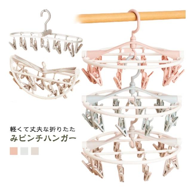 | 軽くて丈夫な折りたたみピンチハンガー サッと折りたたんで収納できます。開くときもピンチがからまず、ラクラク使えます。 タオルや下着、靴下などたくさんの洗濯物を干せて、使わない時は省スペースでしまえます。 折りたたんで持ち運べるので、旅行先などでも使えます。プラスチック製なので、とにかく軽い! | |