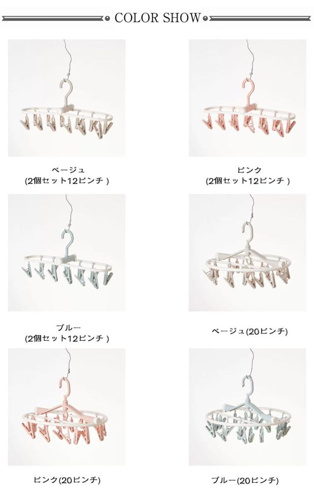 | 色 | ベージュ(2個セット12ピンチ) ピンク(2個セット12ピンチ) ブルー(2個セット12ピンチ) ベージュ(20ピンチ) ピンク(20ピンチ) ブルー(20ピンチ) |