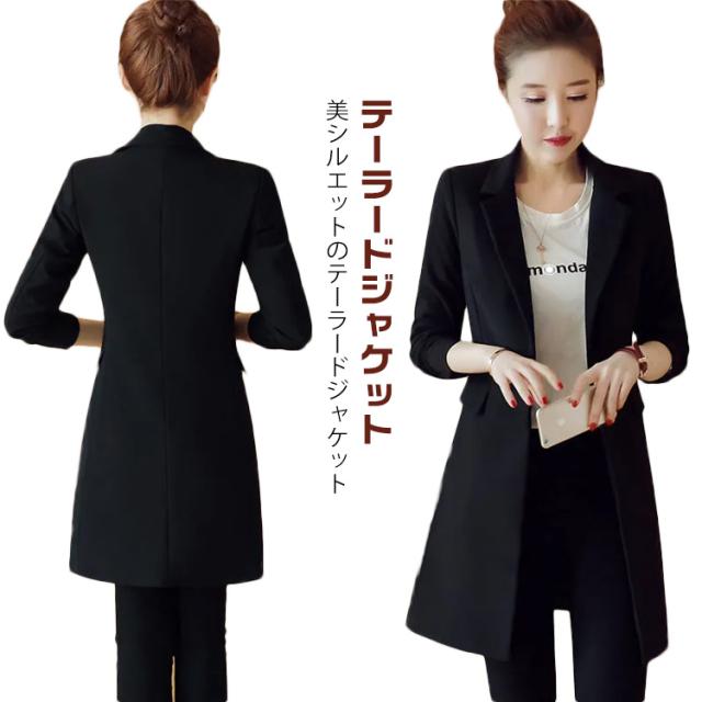 テーラードジャケット レディース ロングテーラードジャケット Aライン 長袖 縦ラインを強調 ロング丈 テーラードジャケット 春ジャケット ライトアウター ブラック 大きいサイズ きれいめ オフィス ビジネス OL 通勤 送料無料