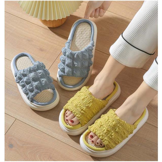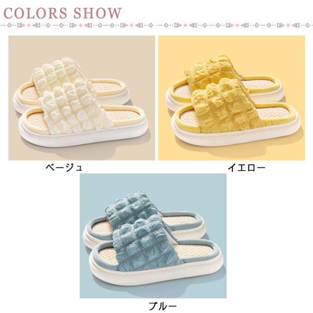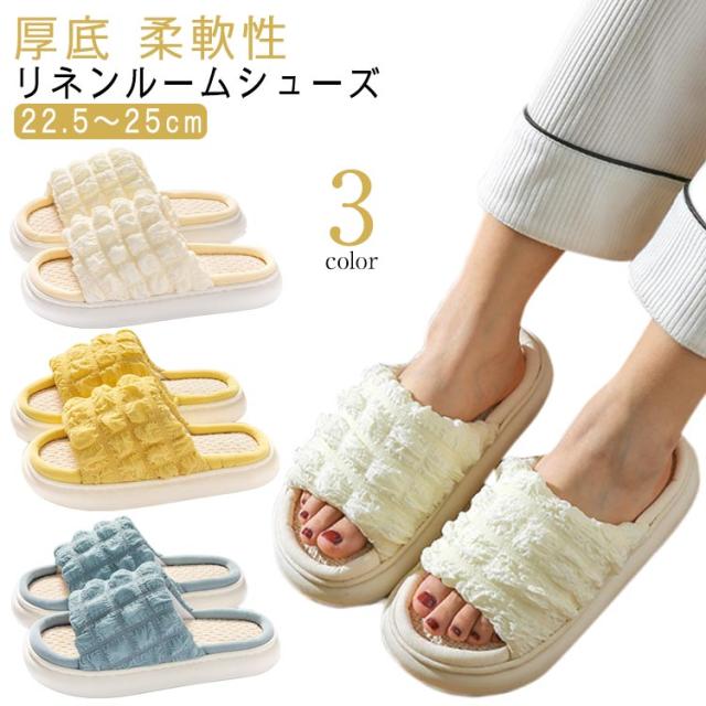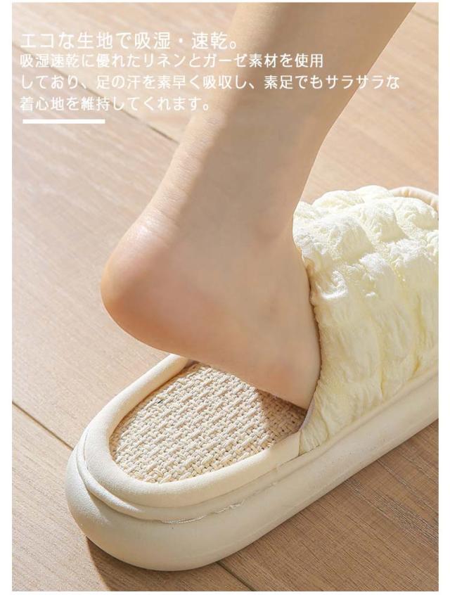 ルームシューズ さらさら 吸湿 快適 スリッパ 洗える サンダル 厚底 柔らかい 麻 リネン あさ 柔軟性 室内 ルームサンダル シューズ 静音 レディース メンズ ベージュ イエロー ブルー 軽い 滑り止め EVA 内履き 可愛い