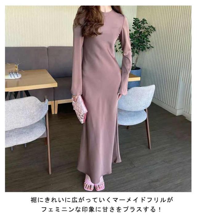 マーメイドワンピース ロングワンピース レディース マーメイドドレス タイトワンピース パーティーワンピース ロング丈 ボリュームスリーブ フレア袖 上品 大人 かわいい おしゃれ フォーマル 二次会 結婚式 お呼ばれ 韓国ファッション